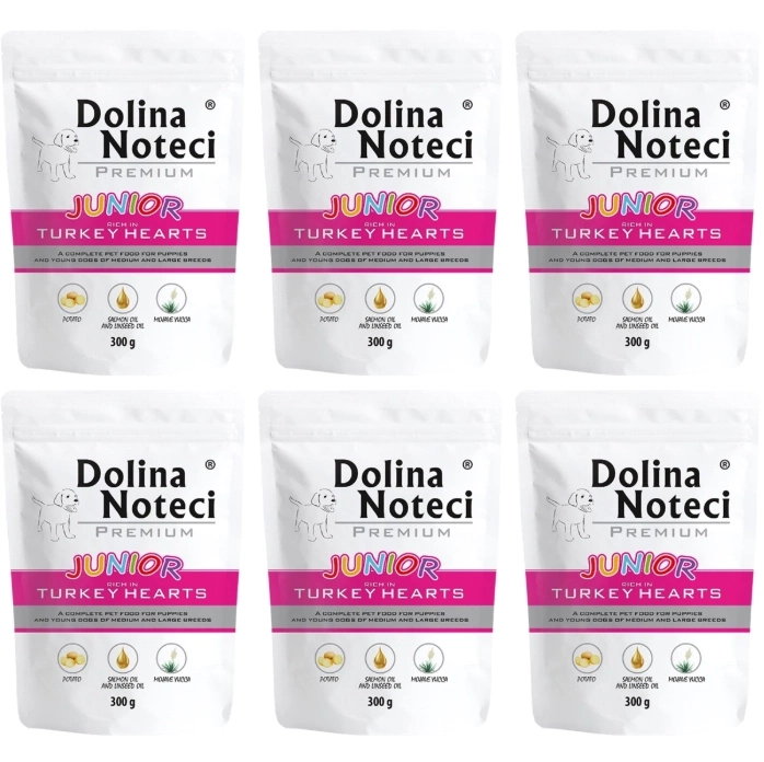 Dolina Noteci Karma Dla Szczeniąt Serca Indyka 6x300g to pełnoporcjowa karma dla psów do 1. roku życia.