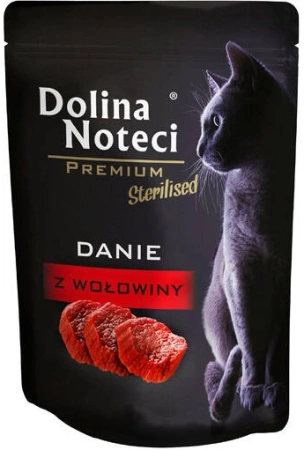 Danie z wołowiny to bezzbożowa karma mokra która została opracowana z myślą o kotach sterylizowanych. Stanowi zbilansowany posiłek dostosowany do zmian, jakie zaszły w ich organizmach na skutek tego zabiegu - zwiększonego ryzyka nadwagi i otyłości oraz powstania chorób im towarzyszących. Zalecane dawkowanie produktu i zapewnienie zwierzęciu aktywności fizycznej gwarantuje utrzymanie jego masy ciała na stałym poziomie. Substancje zakwaszające mocz – chlorek amonu oraz L-metioniny – zapobiegają tworzeniu się kryształów i kamieni moczowych, na powstawanie których koty sterylizowane są szczególnie narażone.