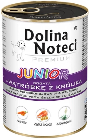 Karma pełnoporcjowa dla szczeniąt oraz młodych psów średnich i dużych ras bogata w wątróbkę z królika 400 g