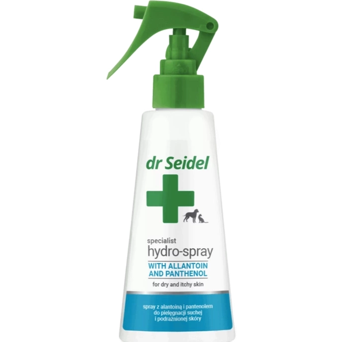- Dr Seidel Hydro Spray Dla Psa Kota Nawilżający 100ml to specjalistyczny produkt dla Twojego pupila, który nawilży jego skórę i przyniesie jej ukojenie w stanach zapalnych.