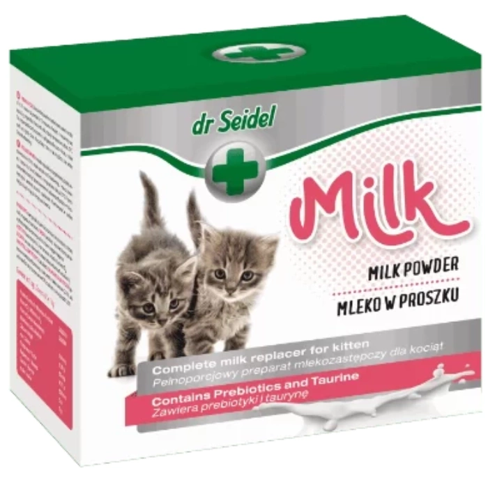 - Dr Seidel Mleko Dla Kociąt w Proszku 2x200g Bez Akcesoriów to specjalna formuła do karmienia kociąt do 4. tygodnia życia.