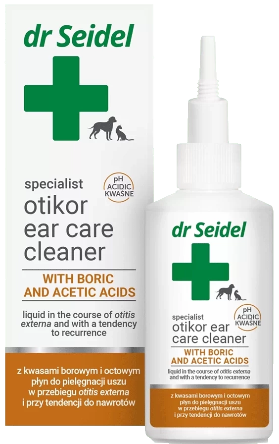 - Dr Seidel Otikor Płyn do Uszu dla Psa Kota Kwas Borowy 2x75ml to specjalistyczny preparat do pielęgnacji uszu Twojego czworonoga.