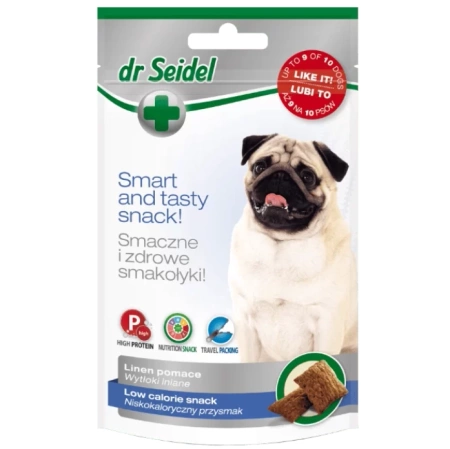 Przysmak dla psa Dr Seidel to smakołyk, o obniżonej kaloryczności.