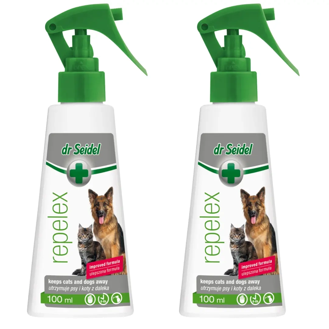 - Dr Seidel Repelex Płyn Odstraszający Psa Kota 2x100ml to pomoc behawioralna, która ułatwi Ci życie z Twoim zwierzakiem. Zestaw 2 sztuk płynu.