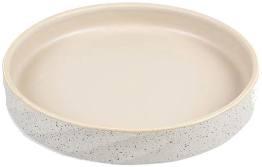Miseczka jest płaska i szeroka, dzięki czemu sprawdzi się w przypadku ras krótkopyskich, dla których głębokie miski są bardzo niekomfortowe.