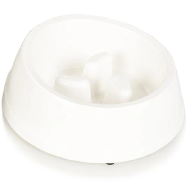 Nieregularne dno miski utrudnia wyjmowanie pokarmu, dzięki czemu zwierzak je wolniej i uważniej.