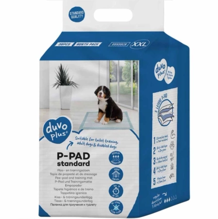 - Duvo+ P-Pad Standard Podkłady Dla Psa XXL 60x90cm 30szt to chłonne i odporne na rozdarcia podkłady, które pomogą Ci utrzymaniu czystości wokół pupila.