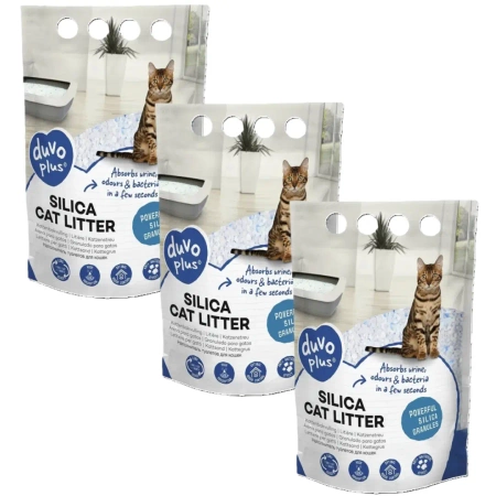 - Duvo+ Premium Żwirek Silikonowy dla Kota 3x5l to zestaw drobnego żwirku silikonowego, który skutecznie chłonie wilgoć i zapachy.