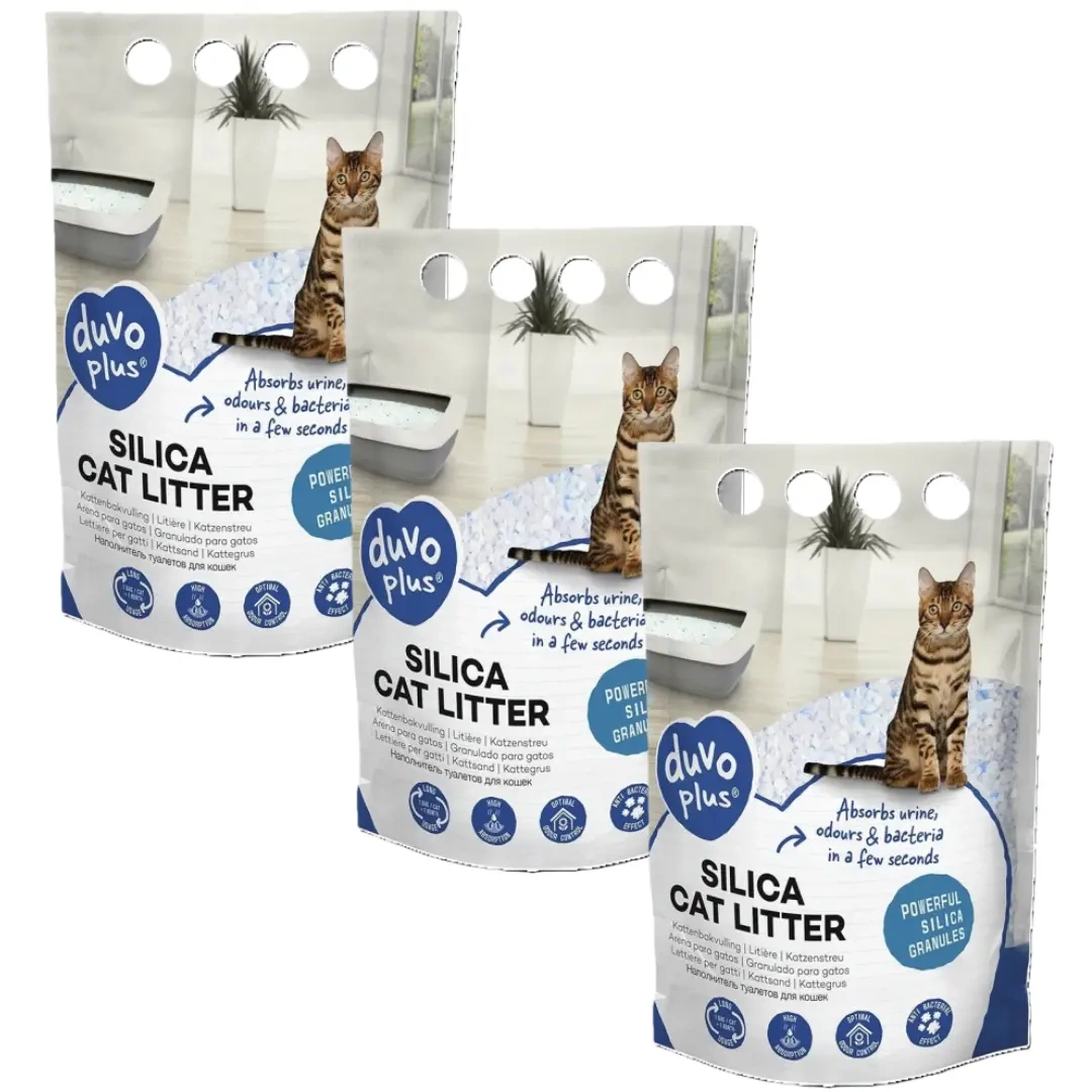 Duvo+ Premium Żwirek Silikonowy dla Kota 3x5l zestaw 3 opakowań żwirku dla kotów.