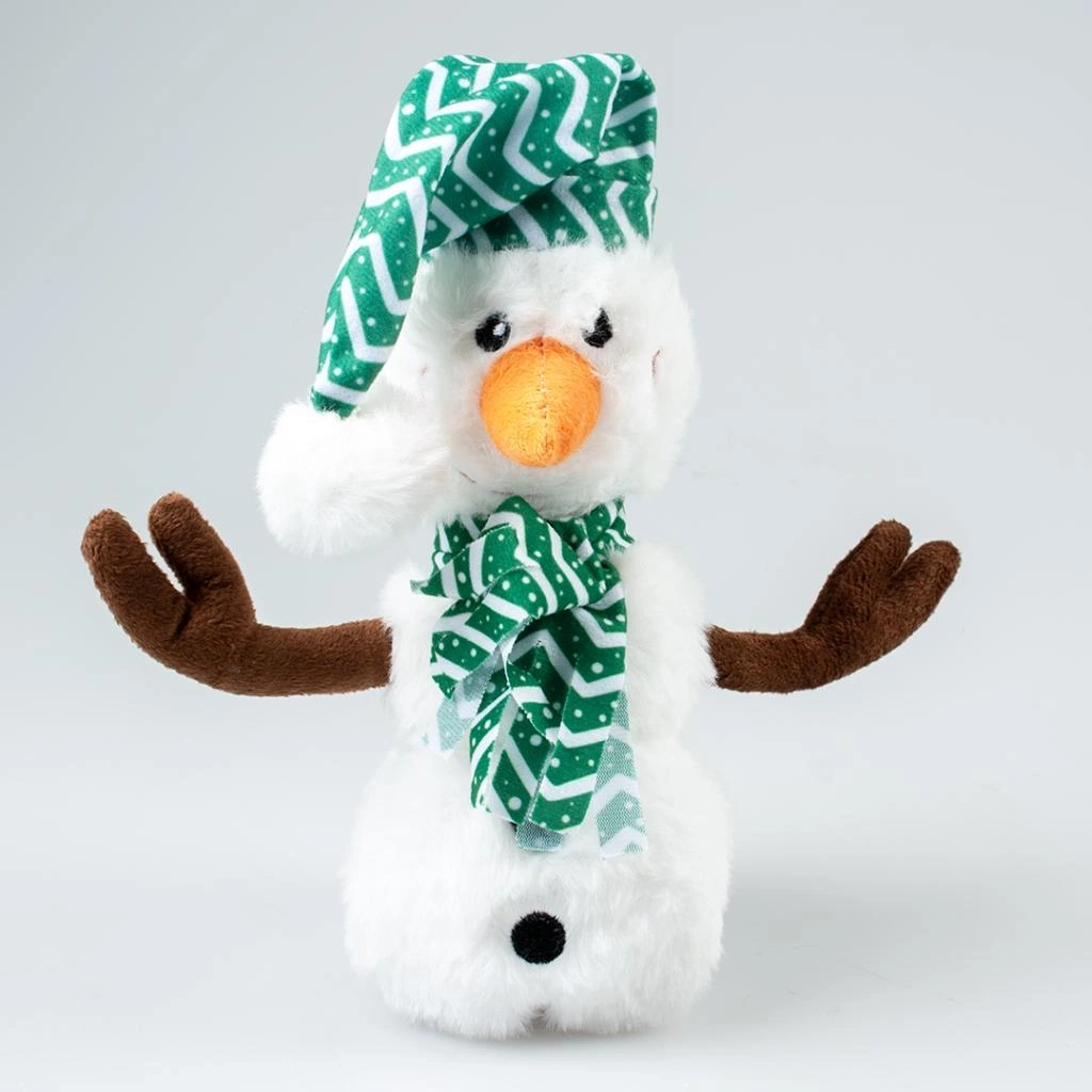 Zabawka pluszowa dla psa Duvo+ Xmas Plush Snowman Leo w postaci uroczej przytulanki - miękkiego bałwanka w zielonej czapce, z piszczałką.