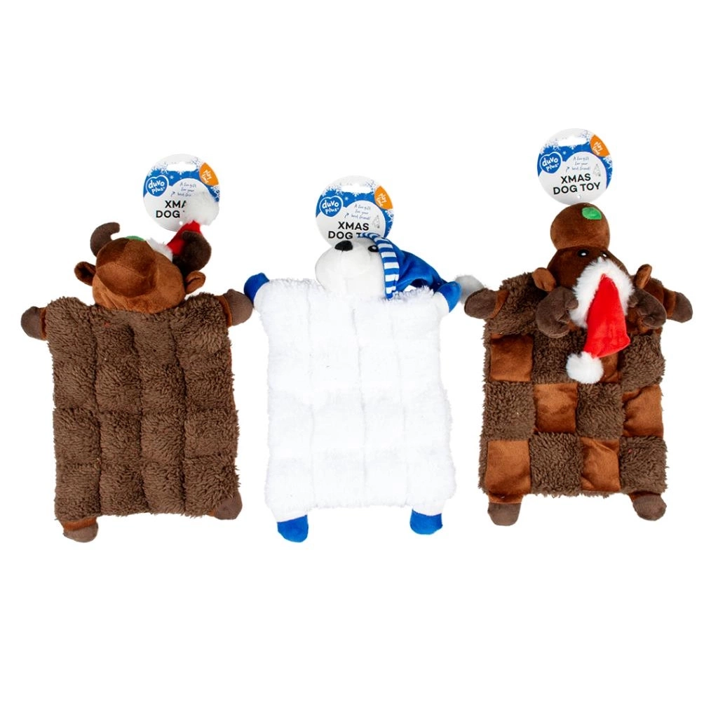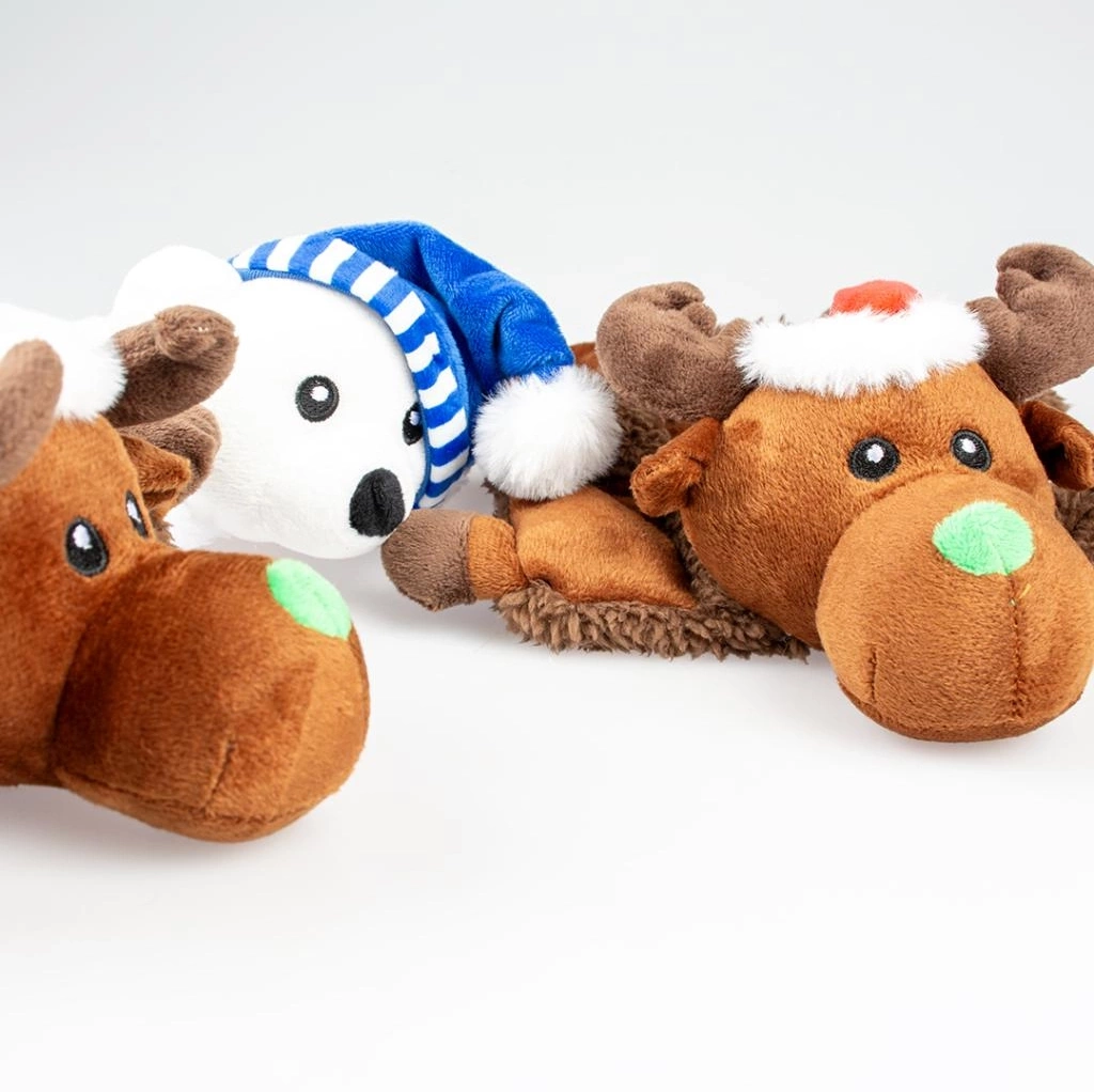 Zabawka pluszowa dla psa Duvo+Xmas Plush Flat Cuddle Squeaky w postaci uroczej przytulanki - renifera lub misia polarnego.