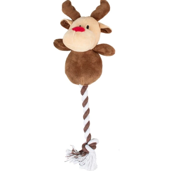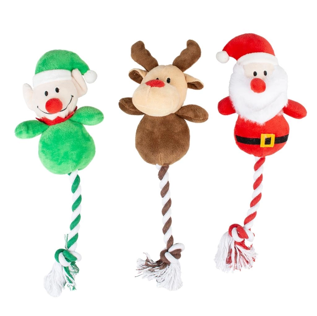 Zabawka pluszowa dla psa Duvo+Xmas Plush Cuddle with Rope w postaci uroczej przytulanki - renifera, mikołaja lub elfa.