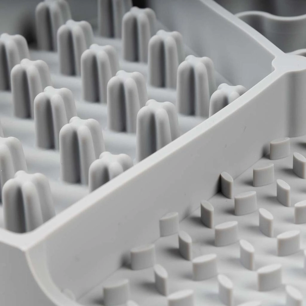 Duvo+ Slow Down Feeder Triple jest niezwykle łatwa w utrzymaniu czystości – można ją myć w zmywarce. A na ciepłe dni? Matę można zamrażać razem z pasztetem, serwując swojemu zwierzakowi chłodzącą i angażującą zabawę sensoryczną.