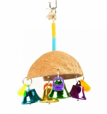 Duvo+ Zabawka Dla Ptaków Z Kokosa z Dzwonkami 27,5x7x7cm