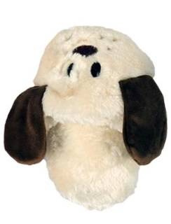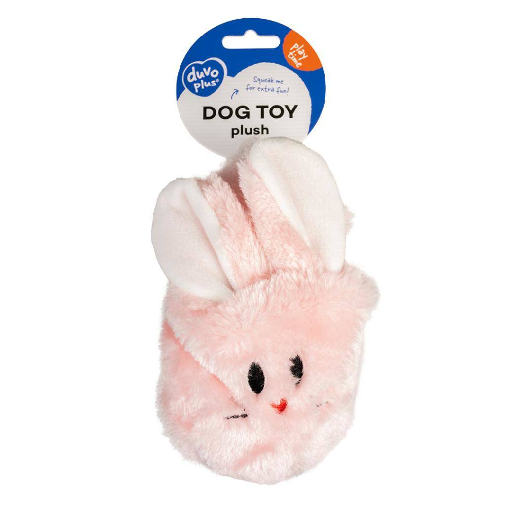 Zabawka dostępna w 3 różnych wzorach: różowy królik, beżowy pies oraz niebieski miś.