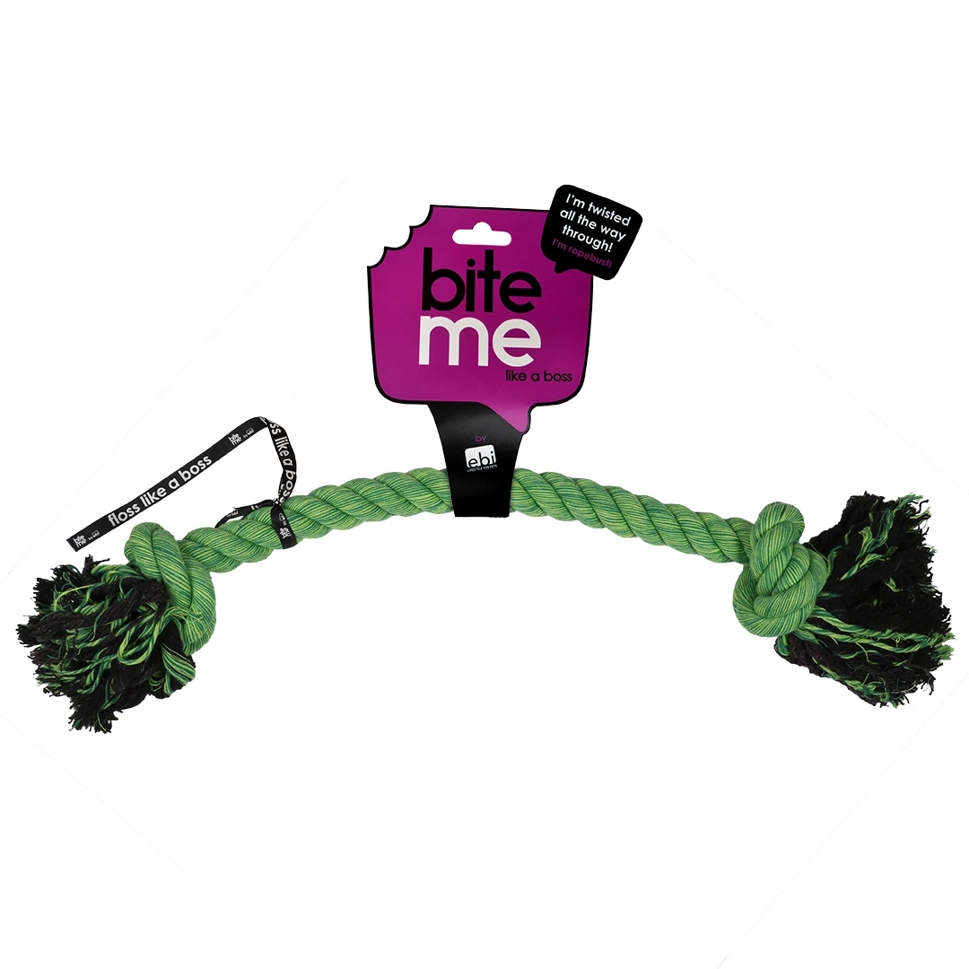 - EBI Bite Me Zabawka dla Psa Sznur Zielony 2 Węzły 95cm to zabawka dla psów do gryzienia. Dba o higienę jamy ustnej czworonoga.