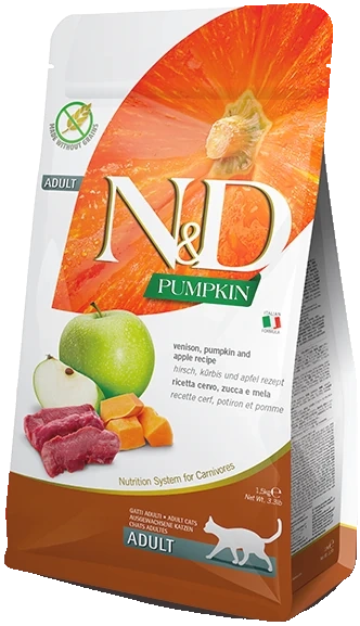 Sucha karma dla kota Farmina N&D Pumpkin to danie ze szlachetnym mięsem jelenia, dynią i jabłkiem.