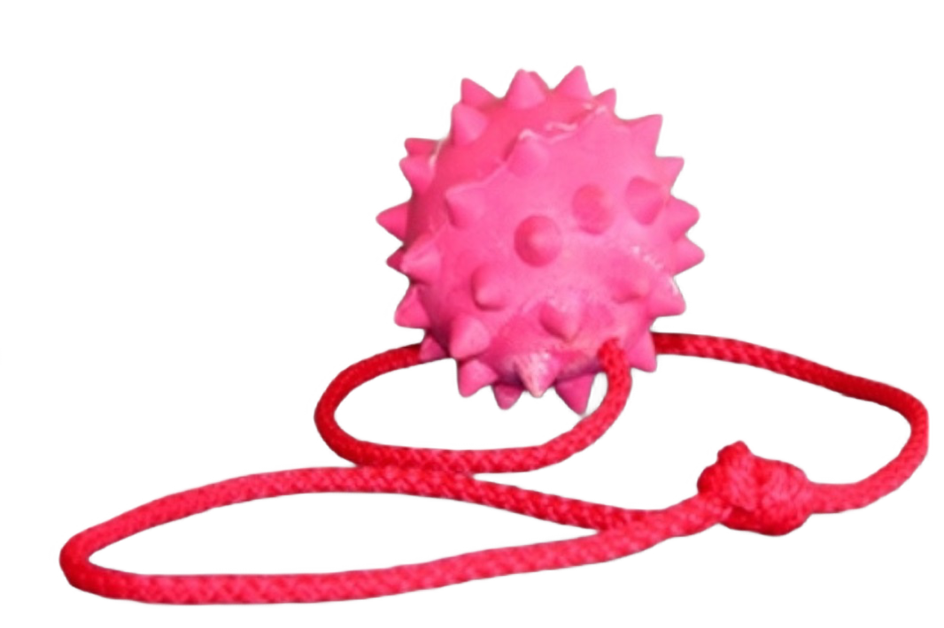 Piłka dla psa jest wykonana z kauczuku- naturalnego i wytrzymałego na gryzienie materiału.
