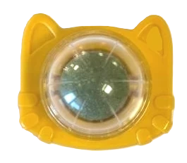 Zabawka dla kota w kształcie kociej głowy, z uszkami. Na środku znajduje się kuleczka kocimiętki, która się obraca.