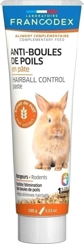 Pasta odkłaczająca Francodex Aniti-Boules to dodatek do diety Twojego gryzonia lub królika, który zawiera słód.