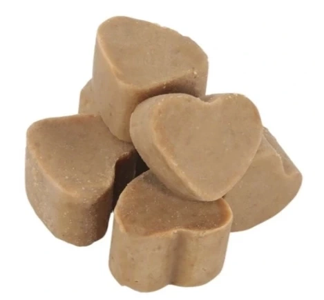 Przysmak dla kota, w formie pastylek-serduszek z olejem konopnym i krylem.