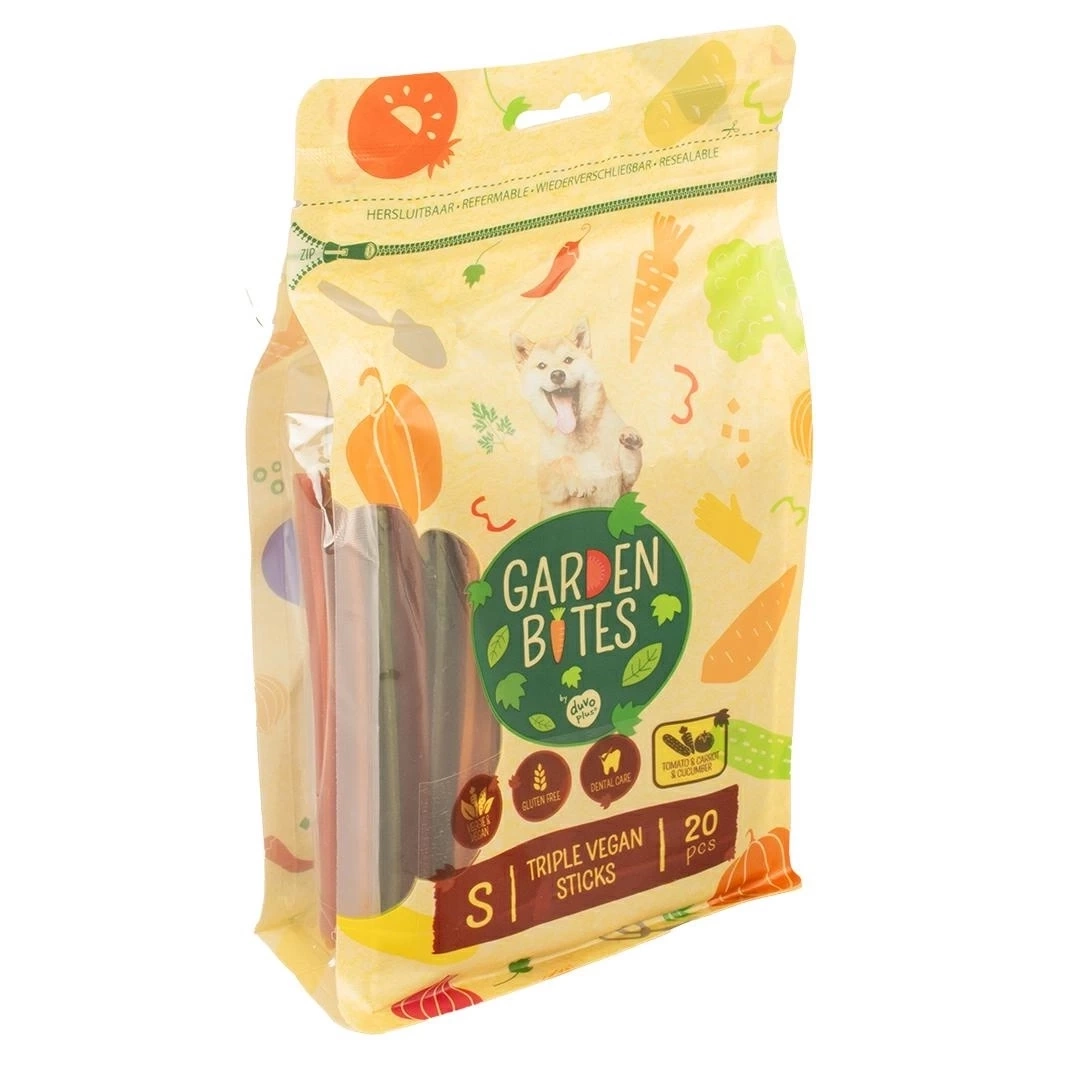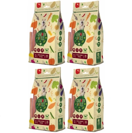 Warzywny przysmak dla psa Garden Bites Vegan Triple Sticks pomoże Ci zadbać o higienę jamy ustnej Twojego psa.