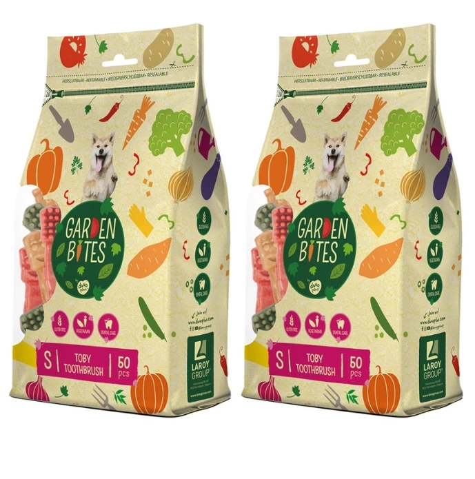 Garden Bites Toby Small Pouch Toothbrush Dla Psa 2x500g to warzywne gryzaki bez zbóż dla małych psów.