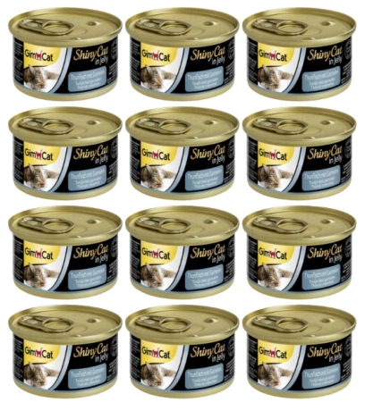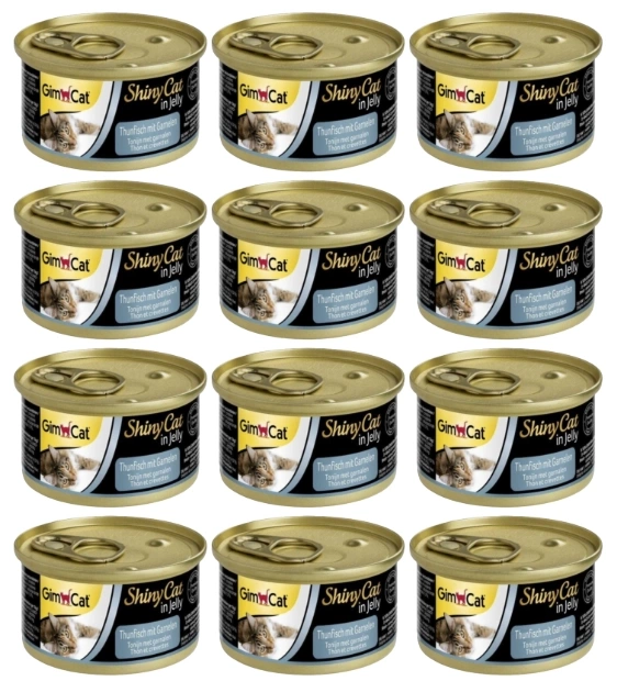 - Gimcat Karma Dla Kota Tuńczyk Krewetki Puszka 12x70g posiłek dla kota zawierający soczyste mięso w delikatnej galaretce.