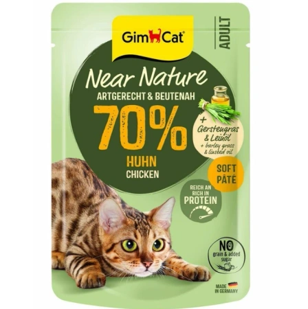 Mokra karma dla kota GimCat Near Nature to bezzbożowa propozycja z aromatycznym mięsem kurczaka.