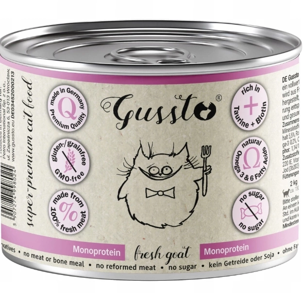 - Gussto Mokra Karma dla Kota Świeża Kozina 200g to zdrowa i pożywna karma dla Twojego kota, bez zbóż i dodatku cukru. Formuła monoproteinowa.