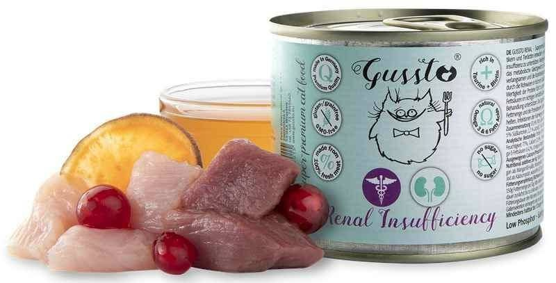 - Gussto Vet Renal Karma Dla Kota Indyk Gęś 12x200g to karma stworzona z myślą o kotach chorujących na przewlekłe zapalenie nerek.