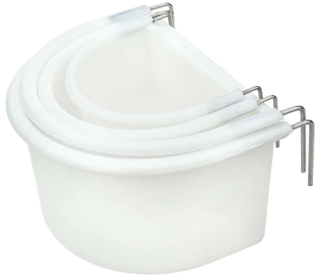 Dzięki haczykom zamocujesz karmidła w dowolnym miejscach klatki.