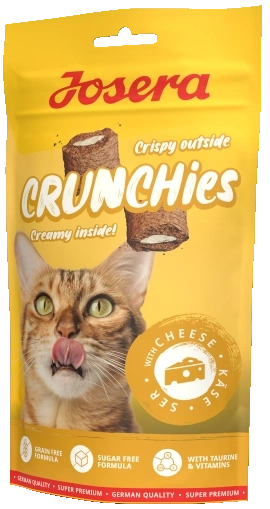 - Josera Crunchies Przysmak dla Kota Ser 60g to delikatne i chrapiące poduszeczki ze smakowitym nadzieniem dla Twojego mruczka.