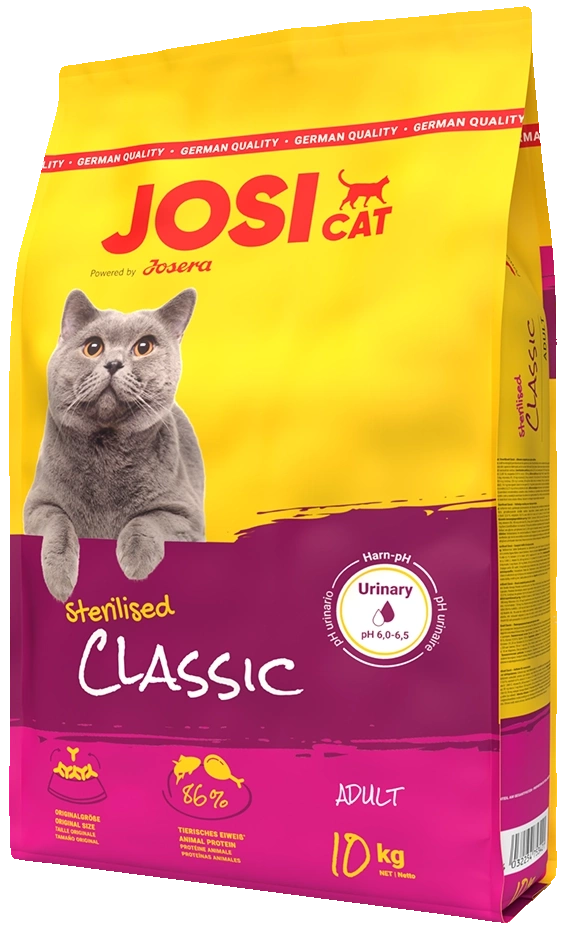 JosiCat Sterilised Classic oferuje sterylizowanemu kotu wykwintne menu - karma jest odpowiednio dostosowana do zmieniających się potrzeb żywieniowych Twojego kota.