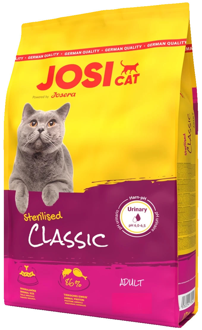 JosiCat Sterilised Classic oferuje sterylizowanemu kotu wykwintne menu - karma jest odpowiednio dostosowana do zmieniających się potrzeb żywieniowych Twojego kota.