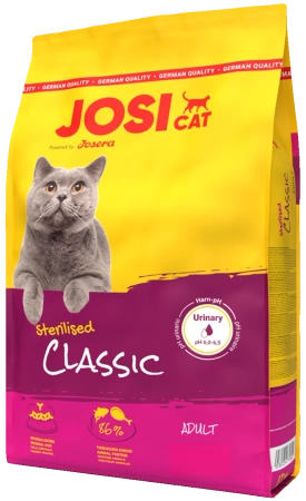 - Josera JosiCat Sterilised Classic Karma dla Kota 18kg to pożywna karma dla Twojego sterylizowanego zwierzaka, która pomoże zadbać jego układ moczowy.