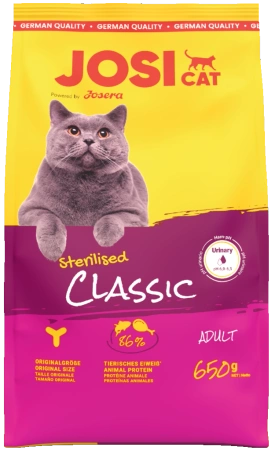 JosiCat Sterilised Classic oferuje sterylizowanemu kotu wykwintne menu - karma jest odpowiednio dostosowana do zmieniających się potrzeb żywieniowych Twojego kota.