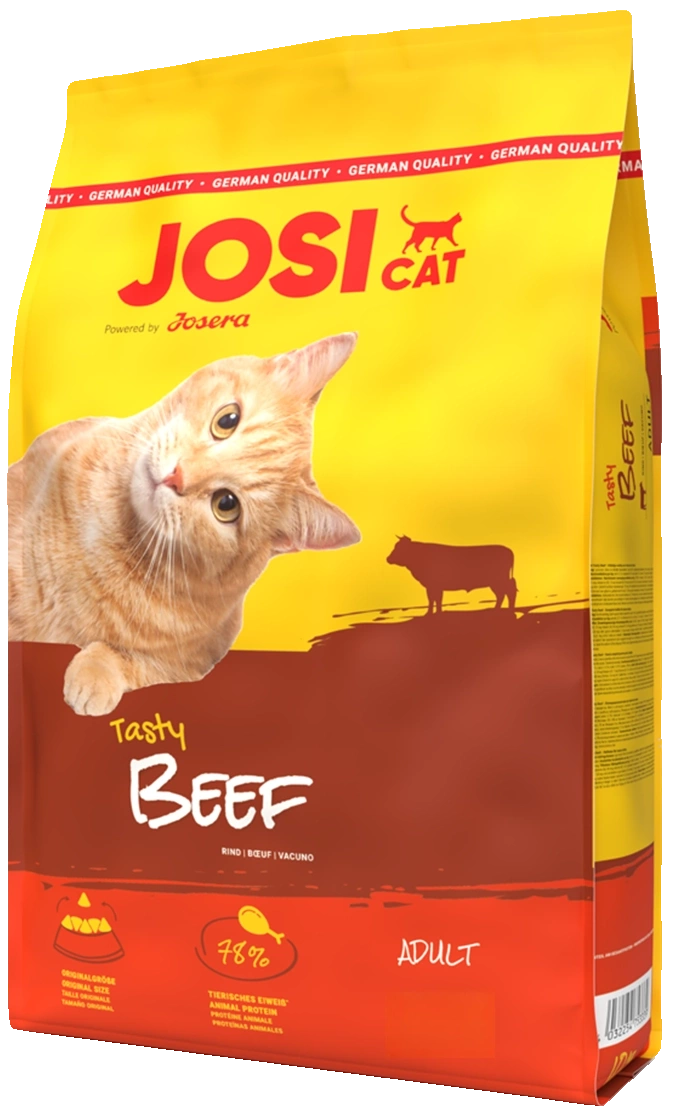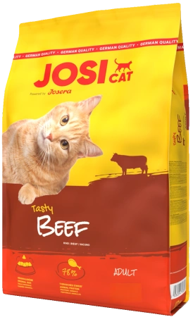 - Josera Josicat Tasty Beef Karma Dla Kota Wołowina to pożywna karma dla dorosłych kotów, z dużą ilością białka zwierzęcego.