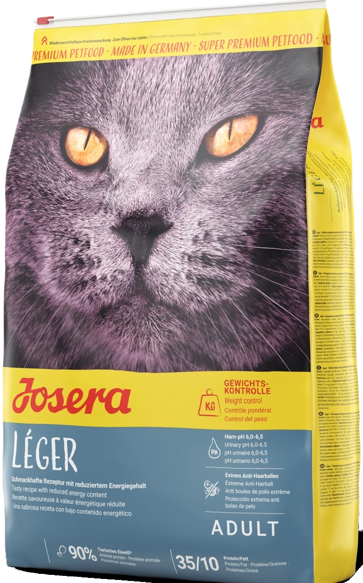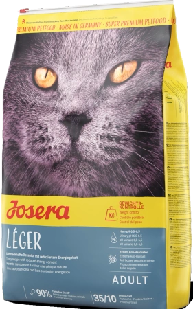 - Josera Leger Adult Cat Karma Dla Kota to pożywna karma bez dodatku zbóż, dla kotów mało aktywnych i wykastrowanych.