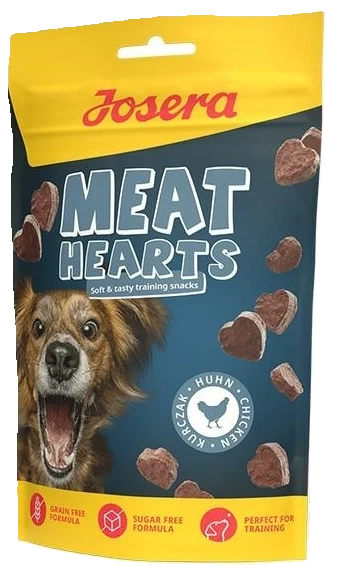 - Josera Meat Hearts Przysmak Dla Psa Kurczak 70g to smakowita przekąska dla Twojego czworonoga w kształcie serduszek z kurczakiem. To świetny wybór na walentynkowy prezent dla psa.