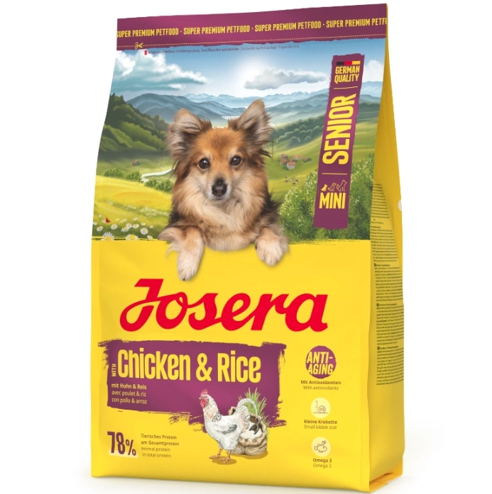 - Josera Mini Senior Karma Dla Psa Kurczak Ryż 900g to pożywny pokarm dla Twojego starszego czworonoga, małej rasy. Formuła bezglutenowa.