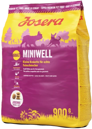 - Josera MiniWell Adult Karma Dla Psa Rasy Małe 900g to pożywna karma bez dodatku zbóż i cukru dla Twojego czworonoga.
