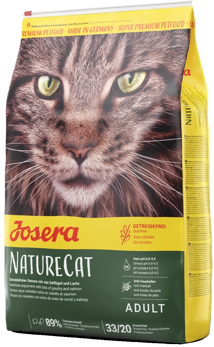 Czy Twój kot nie toleruje zboża i jest prawdziwym tygrysem? Karma JOSERA NatureCat to prawdziwy rarytas dla kotów odkrywców i poszukiwaczy przygód.