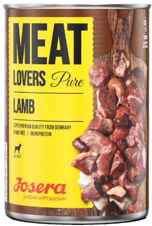Meat Lovers Pure Jagnięcina to monoproteinowa, bezzbożowa i bezglutenowa receptura! Połączenie pysznych, soczystych kawałków jagnięciny, aromatycznego bulionu i wartościowych minerałów sprawia, że każdy pies zamerda ogonem na dźwięk otwierania puszki!