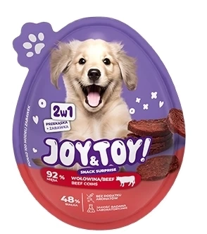 - Joy&Toy Jajko Niespodzianka dla Psa Wołowina+Zabawka 20g to zabawka i smaczek dla Twojego pupila w jednym! Bez zbóż i dodatku cukru.