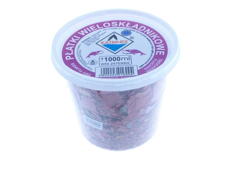 - Katrinex Pokarm dla Ryb Tropikalnych w Płatkach 1000ml to pożywny pokarm dla ryb akwariowych, uniwersalny.