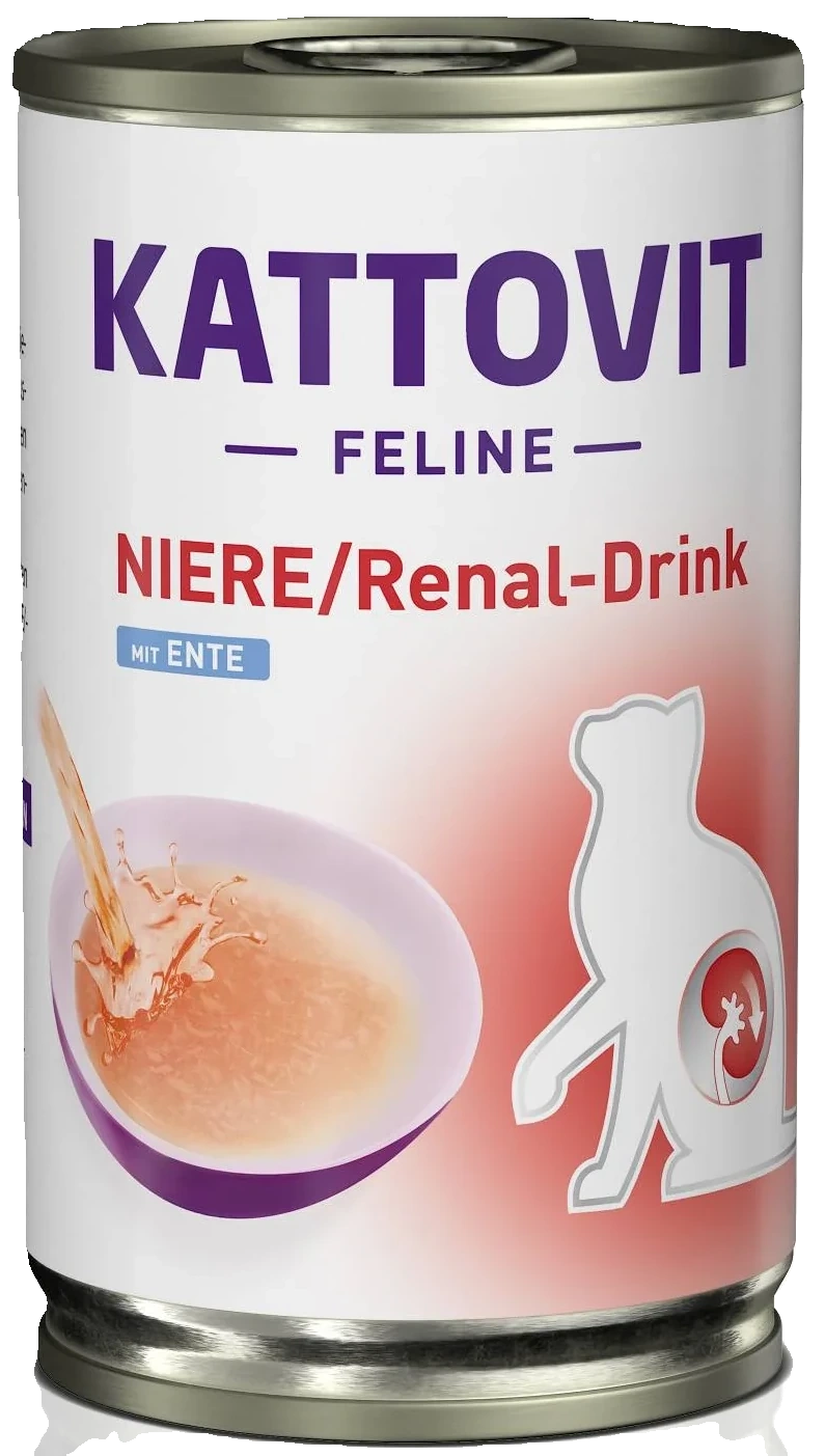 - Kattovit Drink Niere Renal Napój Dla Kota Z Kaczką 135ml jest drinkiem specjalnie stworzonym dla kotów z problemem z nerkami.