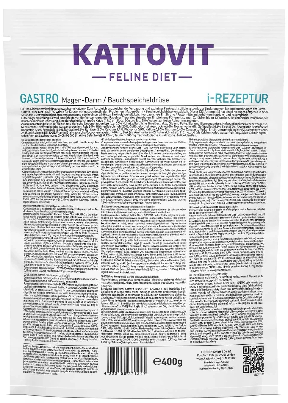 - Kattovit Gastro Sucha Karma Dla Kota 400g to weterynaryjna karma dla kotów z wrażliwym układem pokarmowym.