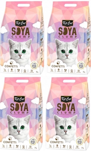 Kit Cat SoyaClump Confetti to w 100% naturalny, ekologiczny, biodegradowalny żwirek sojowy dla kota. Zestaw 4 sztuk