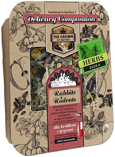 - Korona Natury Delicja Ziołowa Dla Królika Gryzoni 250g to naturalna mieszanka, która wzbogaci dietę Twojego pupila.